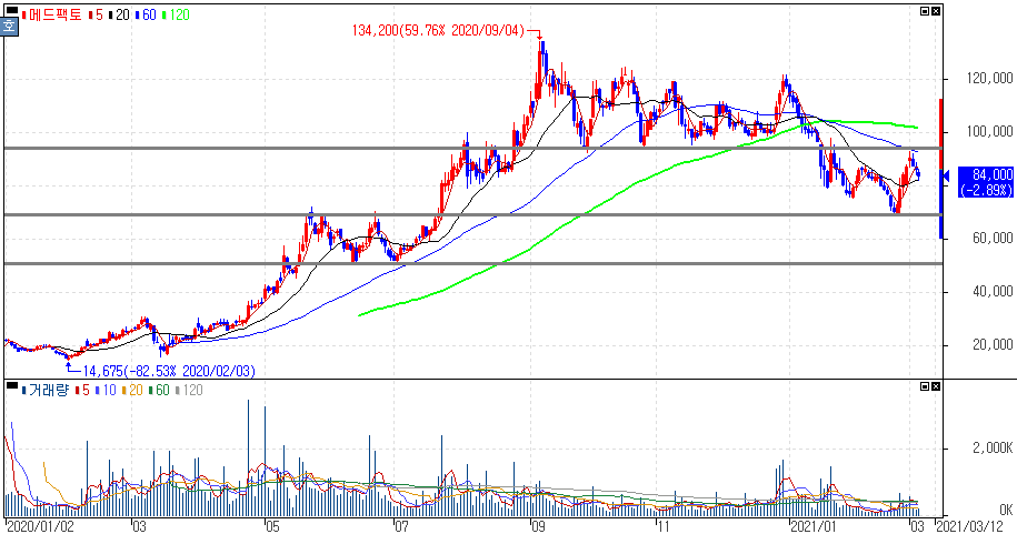 지난한해 긴 상승률을 보였던 메드팩토는 올해 들어 주춤하면서 빠진 주가 흐름을 확인해 볼 수 있습니다. 이번 AACR 초록 발표와 관련해 재반등을 보여줄지, 추가 하락이 될지는 이후 각종 항암 신약의 상용화나 임상결과도 감안해야 하는 부분입니다.